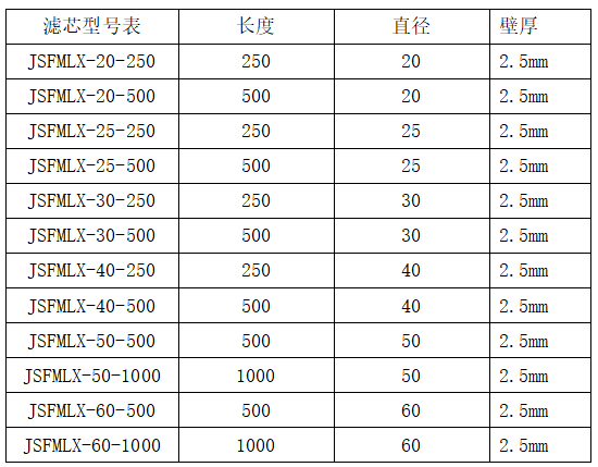 注意:如果需要調整濾芯厚度或長度,可單獨聯系我公司定制