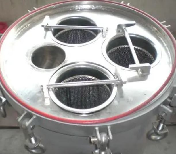 7. 罐體內(nèi)部沖洗干凈后擰緊排污堵頭,裝入過濾袋到金屬籃網(wǎng)內(nèi),擰緊過濾袋緊固件。