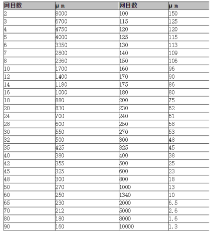 濾袋的孔徑和目數是可以相互轉換的,不同的孔徑對應的目數也不相同??讖降膯挝灰话闶褂梦⒚妆硎镜?,目數的單位則是個。不清楚孔徑與目數轉換關系的伙伴可以保存下面這張明細表。