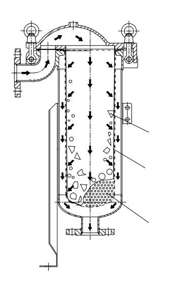 側入式多袋式過濾器液體從側方進入不銹鋼罐體,受到設備本身壓力的沖擊,液體向濾袋四周均勻的展開,干凈的液體透過濾袋,由底部出水口流出,濾渣則被攔截在濾袋內部。